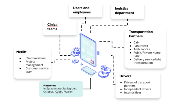Netlift has set itself the challenge of developing a platform that is congruent with the transportation flows of the healthcare network.