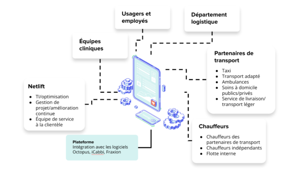 Netlift s’est donné comme défi de développer sa plateforme en congruence avec les flux de transports du réseau de la santé.